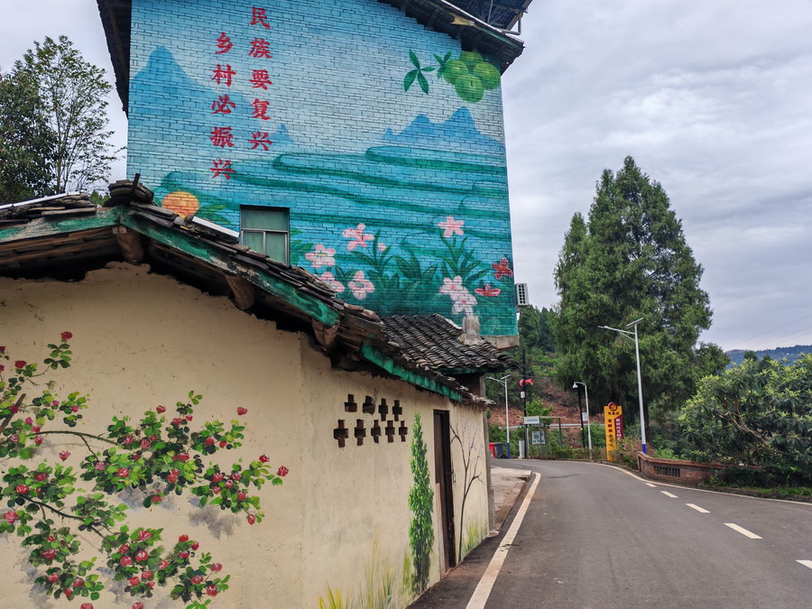走在凤凰村的村道上,两旁的房屋错落有致,墙面上独具特色的墙绘也引人注目:鲜艳的橙子、李子代表丰收,嬉戏的儿童代表幸福……这些墙绘不仅美化了村子环境,还增加了文化韵味和生活气息,成为一道亮丽的风景线。