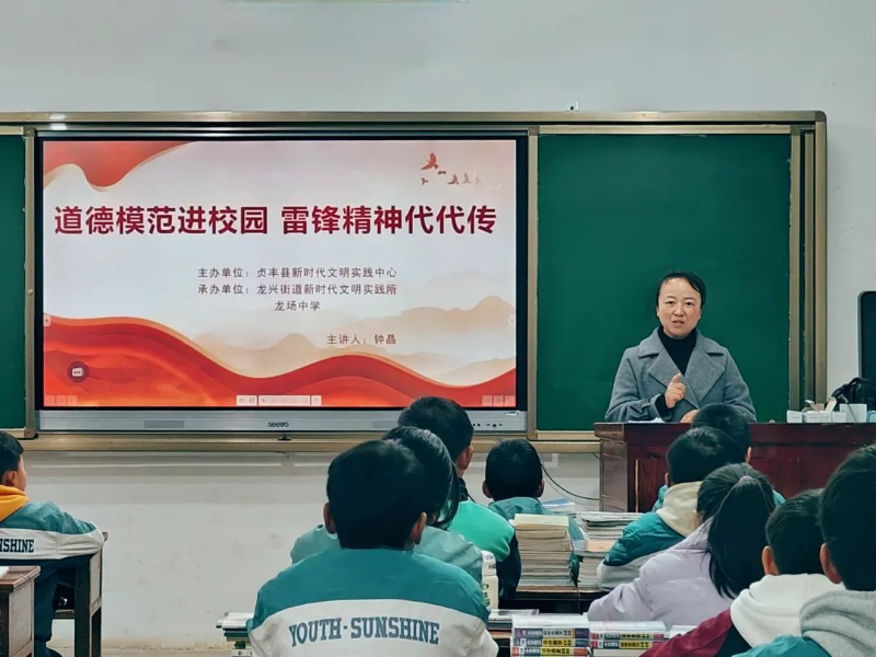 黔西南州贞丰县新时代文明实践中心展“道德模范进校园·雷锋精神代代传”宣讲活动。全国道德模范钟晶走进贞丰县龙场中学,为学生们讲述雷锋的故事,引导学生们自觉主动地向雷锋看齐,做到敢于有梦、勇于追梦、勤于圆梦,把“争做像雷锋那样的人”作为自己一生的追求。
