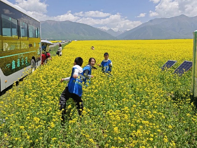 在金色的花海映衬下,一群小学生走进了百里花海联合蜂场。他们化身小小“追蜂人”,近距离观察蜜蜂的世界,在实践中探寻自然的奥秘。这堂开在花海里的生态文明课,让孩子们沉浸式感受到了门源的生态之美与劳动之乐。
