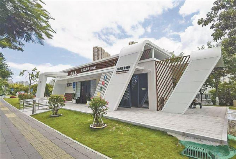 一座现代化智能公厕,坐落于翔安区南部新城路边。厦门市环卫中心供图